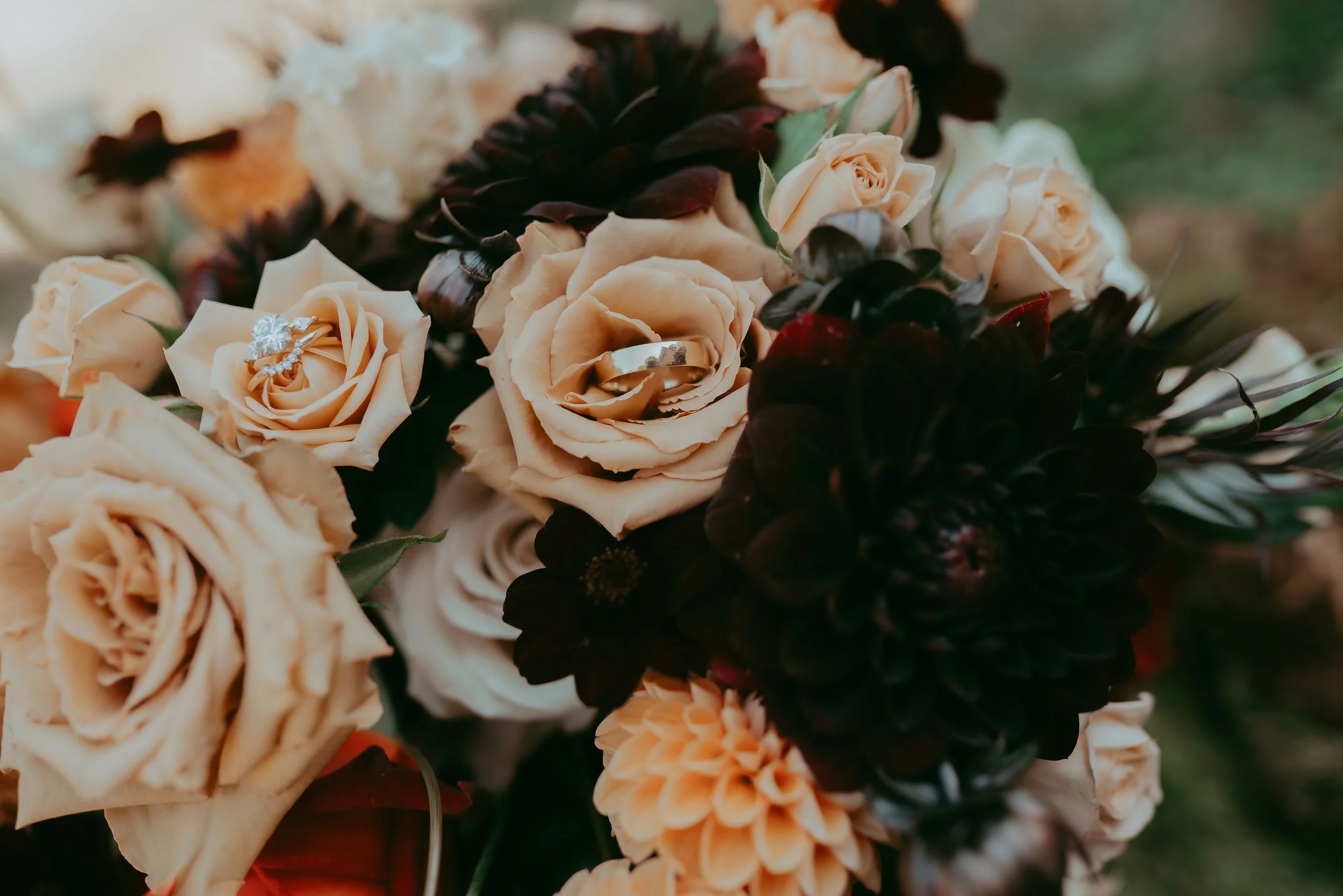 Florals: The Copper Dahlia , set-up assisted by Art In Bloom. Sourced from Northwest Wholesale , Seattle Wholesale Growers Market, Flower World, and The Copper Dahlia