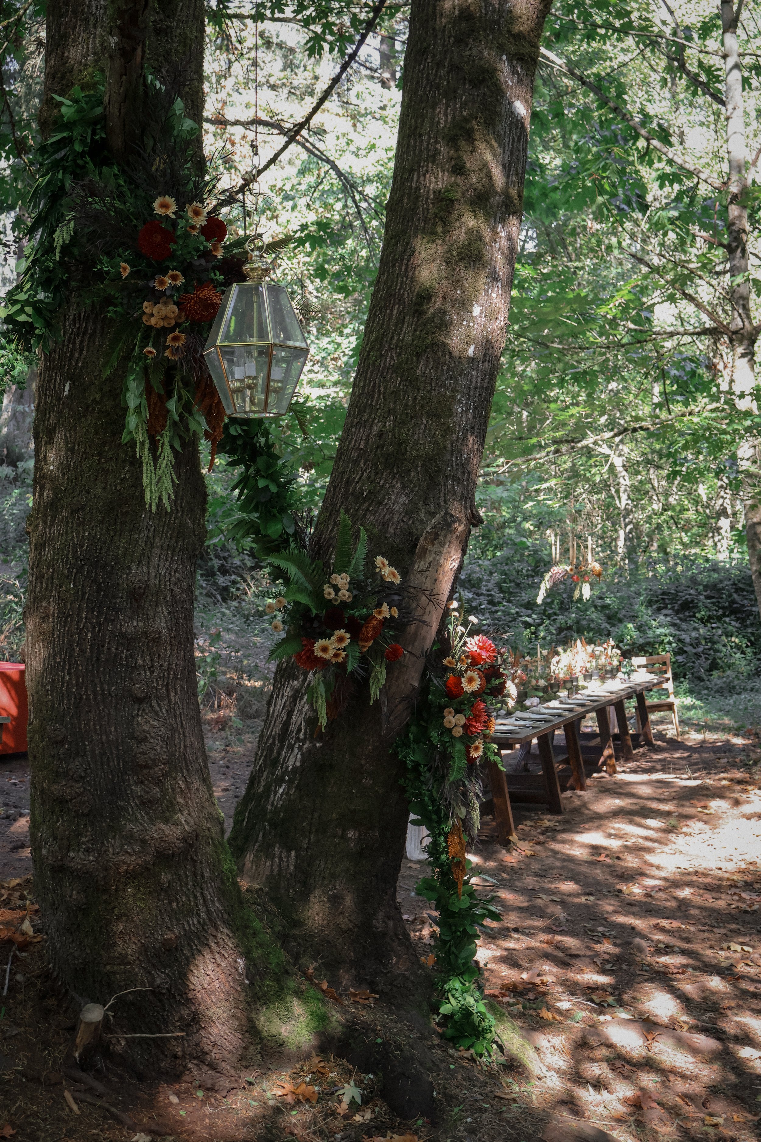 Kelsey and Zach held their small ceremony for 28 at a private residence in Graham, WA. Given that this particular groom is my little brother, I may have pulled out all the stops to make this woodsy celebration a dream.